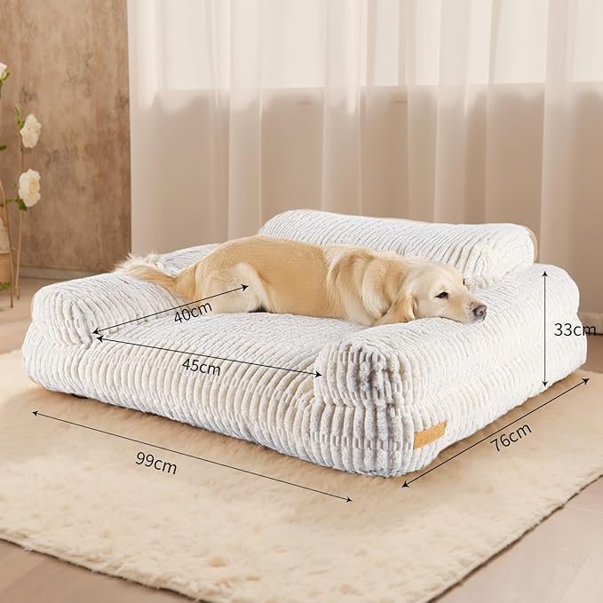 - COMFORT & SUPPORT: Our dog sofa bed is made from a unique blend of chopped foam and polyester with a high backrest that provides excellent head and neck support for your kittens and puppies to enjoy a cozy night’s sleep, whether curled up or stretched out